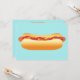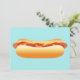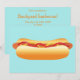 This barbecue invitation card features a delicious cartoon illustration of a hot dog snack. The hot dog has a tasty looking bun and there are both ketchup and mustard on top of the sausage. On the other side there are customizable text areas for your event information.