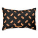 Destei's pattern of illustrated hot dog buns that have a grilled sausage with some ketchup and mustard on top. The background color is black. There is also a personalizable text area for a name or other custom text.
