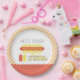 This simple and modern " Hot Dog! " birthday paper plate features a hot dog, bottles of ketchup and mustard on a white background framed by red and yellow diagonal stripes. The reverse side features a mustard yellow background. Personalize for your needs. You can find more matching products at my store.