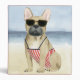 This watercolor print features a puppy in sunglasses enjoying the beach | By Grace Popp