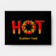 Hot with the letter O made of a flame circle with chili peppers.