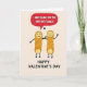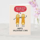 This Valentine's Day card shows two golden fried snack characters, like spring rolls or cannoli, standing close together on a soft cream background. Each one has a simple smiling face and a crisscross texture that looks like a crisp outer layer, with lighter ends on both sides. Their thin black stick arms are linked, which makes them look sweet and supportive of each other. Above them is a red speech bubble with black, all-caps text that reads, “I HAVE FILLINGS FOR YOU VERY HOT FILLINGS.” A tiny black heart sits near the bubble, tying the message to the couple below. Near the bottom, the card says “HAPPY VALENTINE’S DAY” in black block letters, keeping the message clear and easy to read. The whole scene feels warm, funny, and affectionate, like a cute food pun meant for someone you care about ❤️💌🍫.
