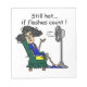 Hot Flash Humor T-shirts, mugs, magnets, buttons, cards, stickers, ornaments, keychains, and more featuring Stella sitting in front of a fan saying she's still hot...if flashes count! If you've ever experienced hot flashes you'll find these Hot Flash Humor items hilarious!