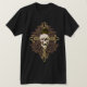 Simply spectacular! Based in the tattoo style that's so hot right now, this design uses a skull with a crown, crossed swords with fleur de lis and an ornate scrollwork design behind. Golds and blues look great on the black tees, but check this design out on the other dark colors available on Zazzle.