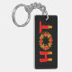 Hot with the letter O made of a flame circle with chili peppers. Custom background color. Custom text on back side.