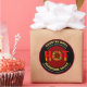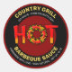 Hot with the letter O made of a flame circle with chili peppers. Custom background color. Four text fields to customize.