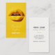 These stylish and fashion-forward business cards feature yellow 3D lips against a cool yellow backgound. The back of the card includes a contemporary set of fonts in charcoal, against a light ivory background. The design is striking and memorable and sure to make a lasting impression. This card is for the modern minimalist in the creative industry. Variations are available in other color combinations.
