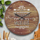 Pretty walnut woodgrain design you can personalize for your own unique family kitchen clock.