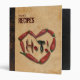 This recipe binder makes a great gift for cooks who love it spicy. The background is an image of scuffed leather and vintage parchment, and jalapenos and chili peppers spell out hot and a heart. NOTE THAT ALL ELEMENTS ARE PRINTED EFFECTS--THERE IS NO ACTUAL LEATHER