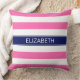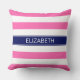 Hot Pink #2 Wht Horiz Stripe Navy Name Monogram Throw Pillow