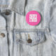 Branded button in vibrant hot pink color (#FF69B4 ) featuring a bold central logo. Personalize yours today. Alma Wad’s design is stylish and modern.