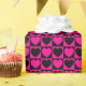 A wrapping paper built with a hot pink and black checkered pattern with hearts. Customize the black background color among several options.