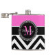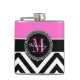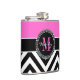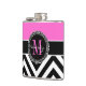Hot Pink and Black Chevron Monogram Flask