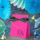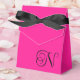 Hot Pink and Black Curly Script Monogram Favor Boxes