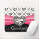 Personalize this pretty hot pink and black damask mouse pad with a fuchsia satin ribbon and rhinestone heart design with your name. A diamond heart and solitaire design on top of subtle striping make up the top of this design. Artwork and design © Chrissy H. Studios, LLC. All rights reserved.