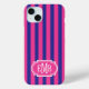 Hot Pink and Navy Blue Monogrammed Stripes Case-Mate iPhone Case
