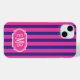 Customize this hot pink and navy blue striped iPhone 15 plus case with your initials in a modern CAP font in white on hot pink. It's so modern and trendy yet preppy and classic!