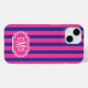 Hot Pink and Navy Blue Monogrammed Stripes Case-Mate iPhone Case