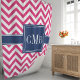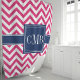 Hot Pink and Navy Chevron Stripes Monogram Shower Curtain