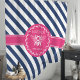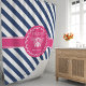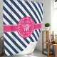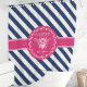 Hot Pink and Navy Stripes Honey Bee Monogram Shower Curtain