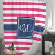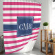 Hot Pink and Navy Stripes Nautical Monogram Shower Curtain