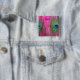 Amazing background brings out the greens and blues of the peacock eye. Lovely pink design for the animal lover.