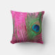 Hot Pink and Peacock Feathers Still Life Throw Pillow