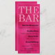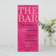 This girly, feminine custom bar menu features a sophisticated hot pink and soft, baby pink glitter design. The title, "The Bar" is printed at the top in a large pink glitter style font over a textured, hot pink background. A list of cocktails and drinks is printed below in white. It's perfect for any party or event.