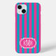 Hot Pink and Turquoise Monogrammed Stripes Case-Mate iPhone Case