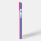 Customize this hot pink and turquoise striped iPhone 15 plus case with your initials in a modern CAP font in white on hot pink. It's so modern and trendy yet preppy and classic!