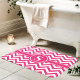Add a bold and vibrant touch to your bathroom with this hot pink and white chevron monogram bath mat. The striking zigzag pattern creates a modern and eye-catching design, while the customizable monogram adds a personal touch. Perfect for brightening up your space, this mat is a stylish and functional addition to any bathroom decor.