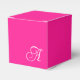 Create your own girly monogrammed hot pink and white cube shape favor box for her.
