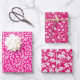 Hot Pink and White Floral Pattern Wrapping Paper Sheets
