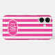 Hot Pink and White Monogrammed Stripes Case-Mate iPhone Case