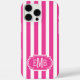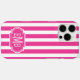 Hot Pink and White Monogrammed Stripes Case-Mate iPhone Case