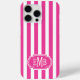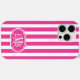 Hot Pink and White Monogrammed Stripes Case-Mate iPhone Case