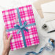A wrapping paper designed with a hot pink and white plaid pattern. Customize the white background among other options.