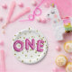 Hot Pink Balloons Gold Dots ONE 1st Birthday Party Paper Plates