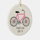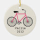 An ornament featuring an illustration of a hot pink bicycle. Personalize with your name under bike.