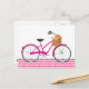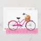 A fun hot pink bicycle with a basket filled with fresh oranges!