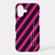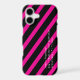 A short, personalized message of encouragement in Python programming language and stripes provide a tech, fashion forward design while protecting your phone. The design's background consists of hot pink and black diagonal stripes. The custom message is in white text. The font, color, and location of the text may be changed by using the Edit Design option.