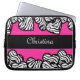 Hot pink black and white zebra pattern heart name laptop sleeve