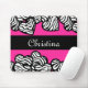 Hot pink black and white zebra pattern heart name mouse pad