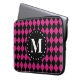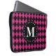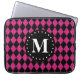 Hot Pink Black Diamond Pattern Monogram Laptop Sleeve