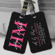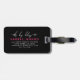 The back has a matching black background with white fonts, featuring the phrase “This bag belongs to” in the same script style. Your name is highlighted in hot pink, while the contact info appears in white using a mix of bold serif and script fonts for stylish contrast. All colors can be customized, so you can adjust the background, monogram, font, or text color to suit your style. This personalized luggage tag makes a fun and practical gift for a girly girl, sorority sister, mom, or travel lover—perfect for birthdays, holidays, or just because.