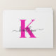 These simple, elegant white set of 3 pocket folders with your first name in a trendy script font in black typed over your first initial in a modern cap font in hot pink are perfect for keeping yourself organized. They're stylish and trendy and yet very classic.
