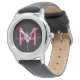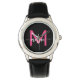 Hot Pink Black Modern Script Girls Monogram Name Watch