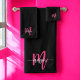 Hot Pink Black Modern Script Girly Monogram Name Bath Towel Set