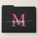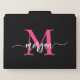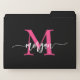 Hot Pink Black Modern Script Girly Monogram Name File Folder