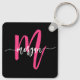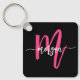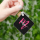 Hot Pink Black Modern Script Girly Monogram Name Keychain